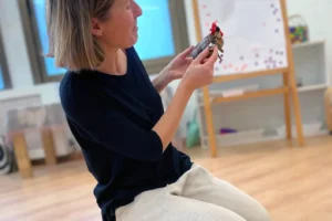 El taller inclou també una petita manualitat senzilla: cada infant, amb l’ajuda de la seva família, crea un pal amb una estrella ballarina que després utilitzarem per acompanyar les danses i donar encara més color i alegria a la celebració.