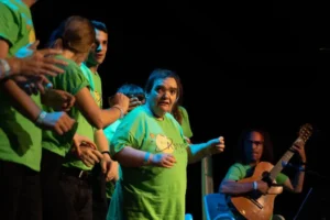 El teatre és una eina transformadora que ens permet treballar l’expressió, la comunicació i la cohesió. A Creixent amb Art entenem el teatre inclusiu com un espai on conviuen diferents maneres de ser, de veure i de viure. L’objectiu no és només actuar: és visibilitzar la diversitat, generar noves mirades i crear referents artístics on tothom s’hi pugui reconèixer.