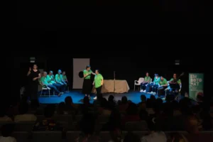 Amb el grup de la Fundació Astres també hem creat petites peces teatrals que s’han presentat en teatres i mostres, com el Festival Embotona’t, fent visible la feina del grup i compartint-la amb el públic en un entorn artístic i comunitari.